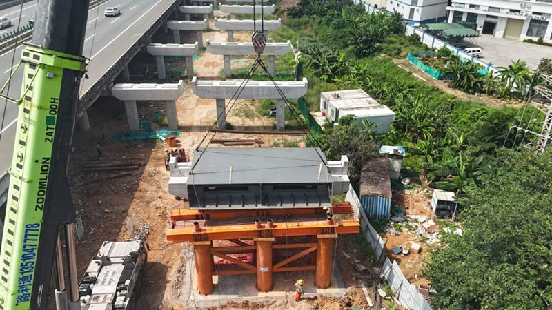10月15日凌晨,正值華南地區(qū)旱季施工黃金期,隨著500噸汽車(chē)吊將36.98噸重的鋼箱梁(長(zhǎng)9316mm、寬5333mm、高1617mm)穩(wěn)穩(wěn)架設(shè)在大嶺山互通A匝道橋指定支座上,常虎高速改擴(kuò)建工程旱季攻堅(jiān)迎來(lái)關(guān)鍵突破——由保利長(zhǎng)大承建的施工第七合同段大嶺山互通A匝道橋首片鋼箱梁吊裝作業(yè)順利完成。這一成果的取得,是市路橋公司第四管理處黨支部聯(lián)合項(xiàng)目黨支部緊扣“旱季大干、提速攻堅(jiān)”目標(biāo),以黨建引領(lǐng)生產(chǎn)、黨員沖鋒在前的生動(dòng)實(shí)踐,標(biāo)志著項(xiàng)目從下部結(jié)構(gòu)施工轉(zhuǎn)入上部結(jié)構(gòu)攻堅(jiān)新階段,更為保障項(xiàng)目整體工期、助力大灣區(qū)交通升級(jí)筑牢根基。